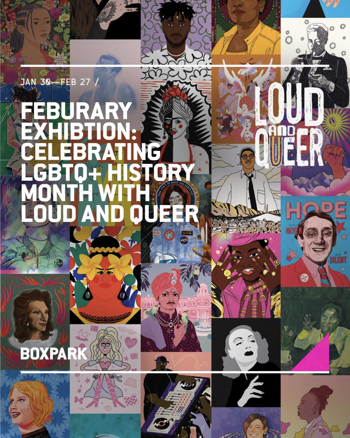 Run by illustrator George Morton, Loud & Queer is an artful online platform which celebrates the stories of LGBTQ+ people around the world. To mark LGBTQ+ History Month, they teamed up with Boxpark to put on an exhibition of portraits of iconic queer figures in Shoreditch and Croydon during February.